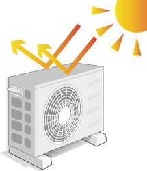 不整形シリカと複合酸化物系の遮熱顔料が、太陽光に含まれる熱線を効率的に反射し室外機表面温度の上昇を抑制します。