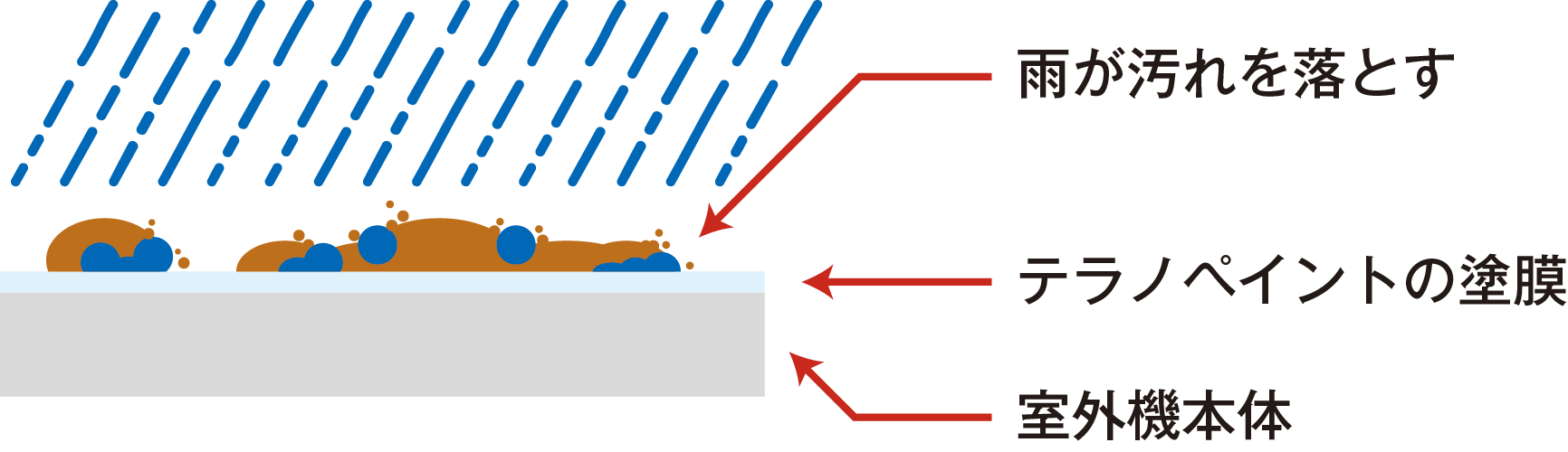 不整形シリカにより塗膜表面が高密度化し、剥がれや破損を防止。さらに高反射率と放熱性で室外機の温度上昇を抑え、熱交換効率を維持します。